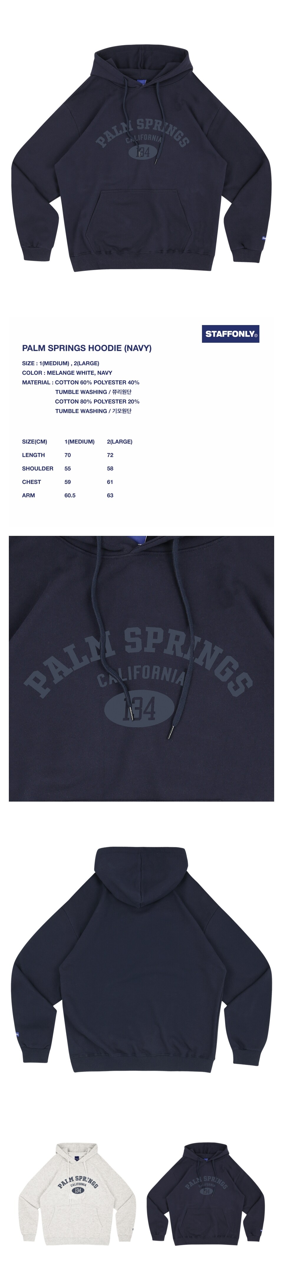 2 (LARGE) 총장 72 / 어깨너비 58 / 가슴단면 61 / 소매길이 63