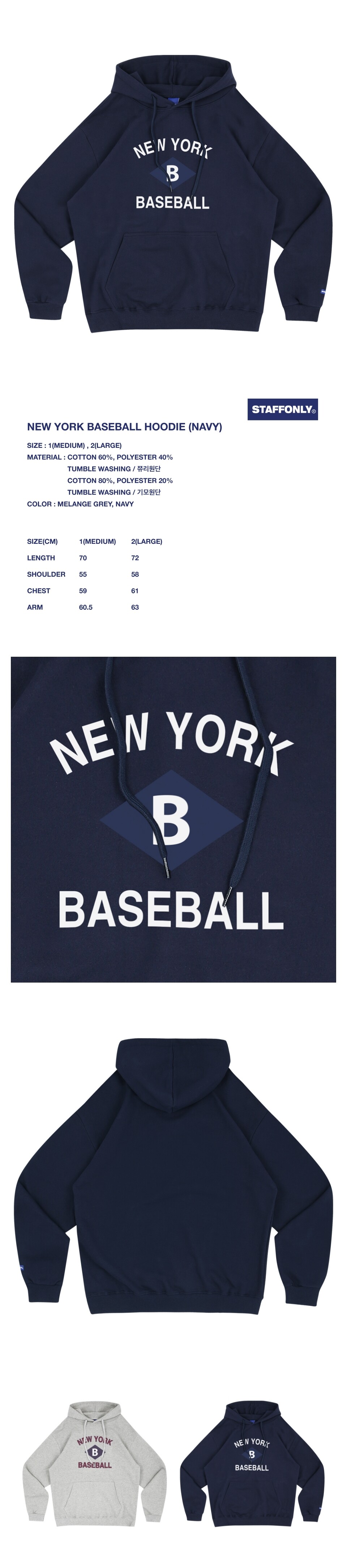 NEW YORK BASEBALL HOODIE (NAVY)