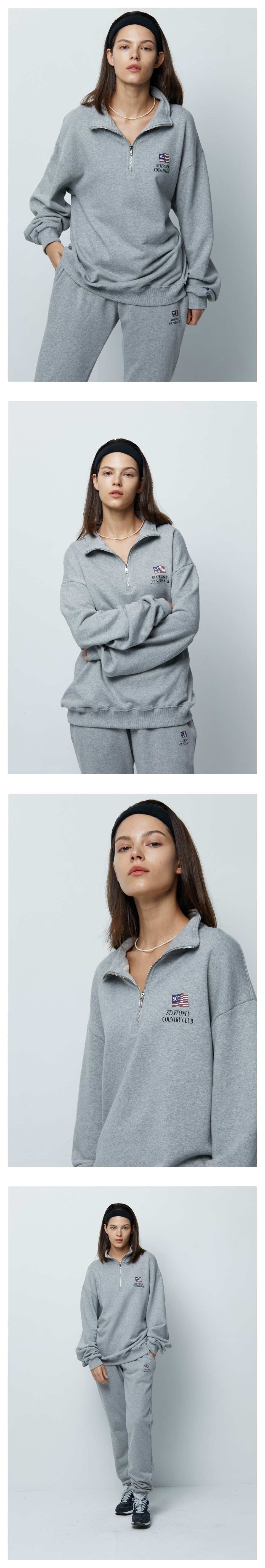 FLAG LOGO HALF ZIP-UP SWEATSHIRTS (MELANGE GREY)