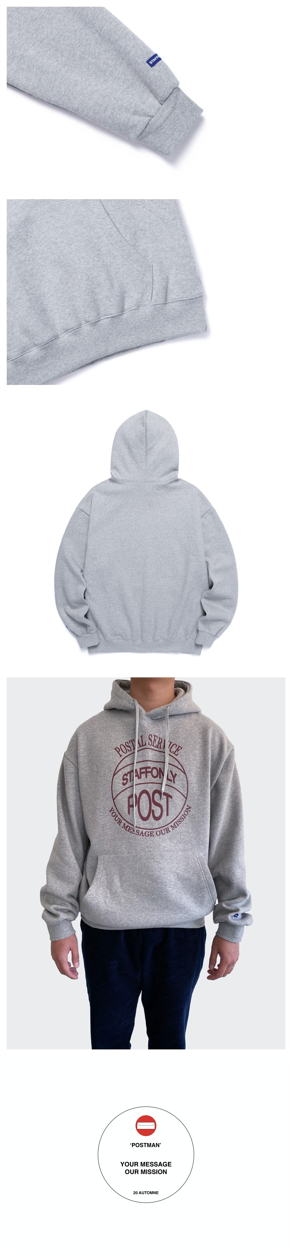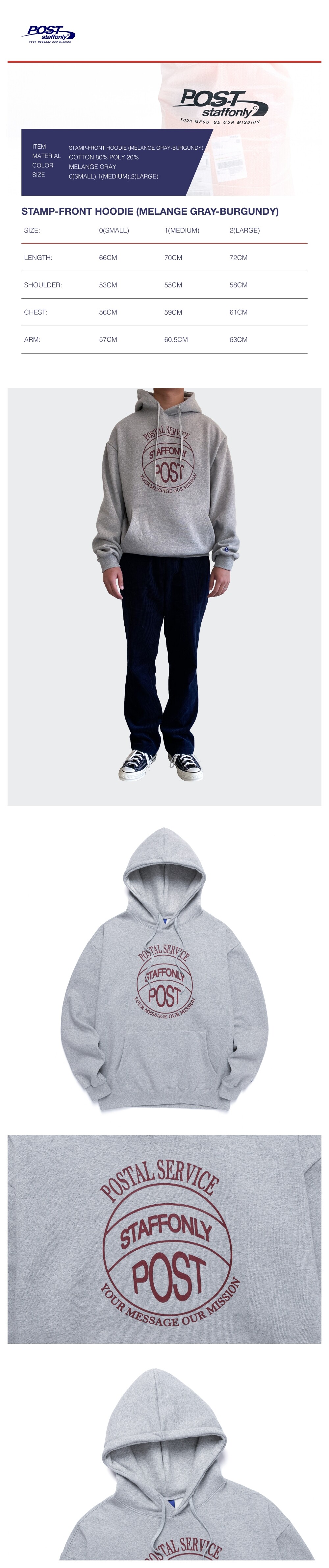 STAMP-FRONT HOODIE (MELANGE GREY / BURGUNDY)